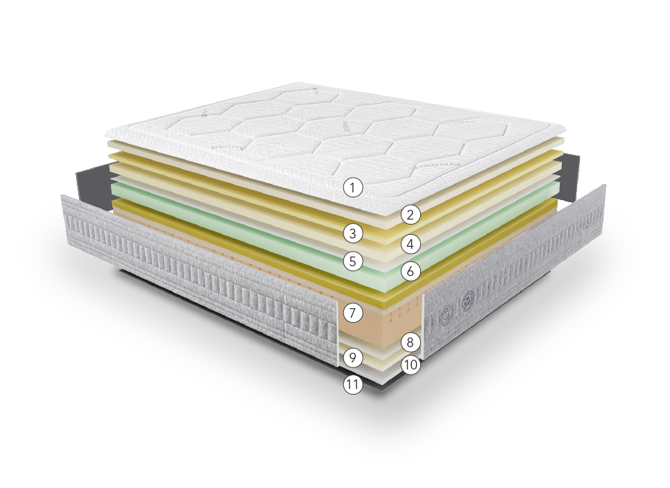Colchón tricomponente de viscoelástica reticular HR perfilados y adaptables.